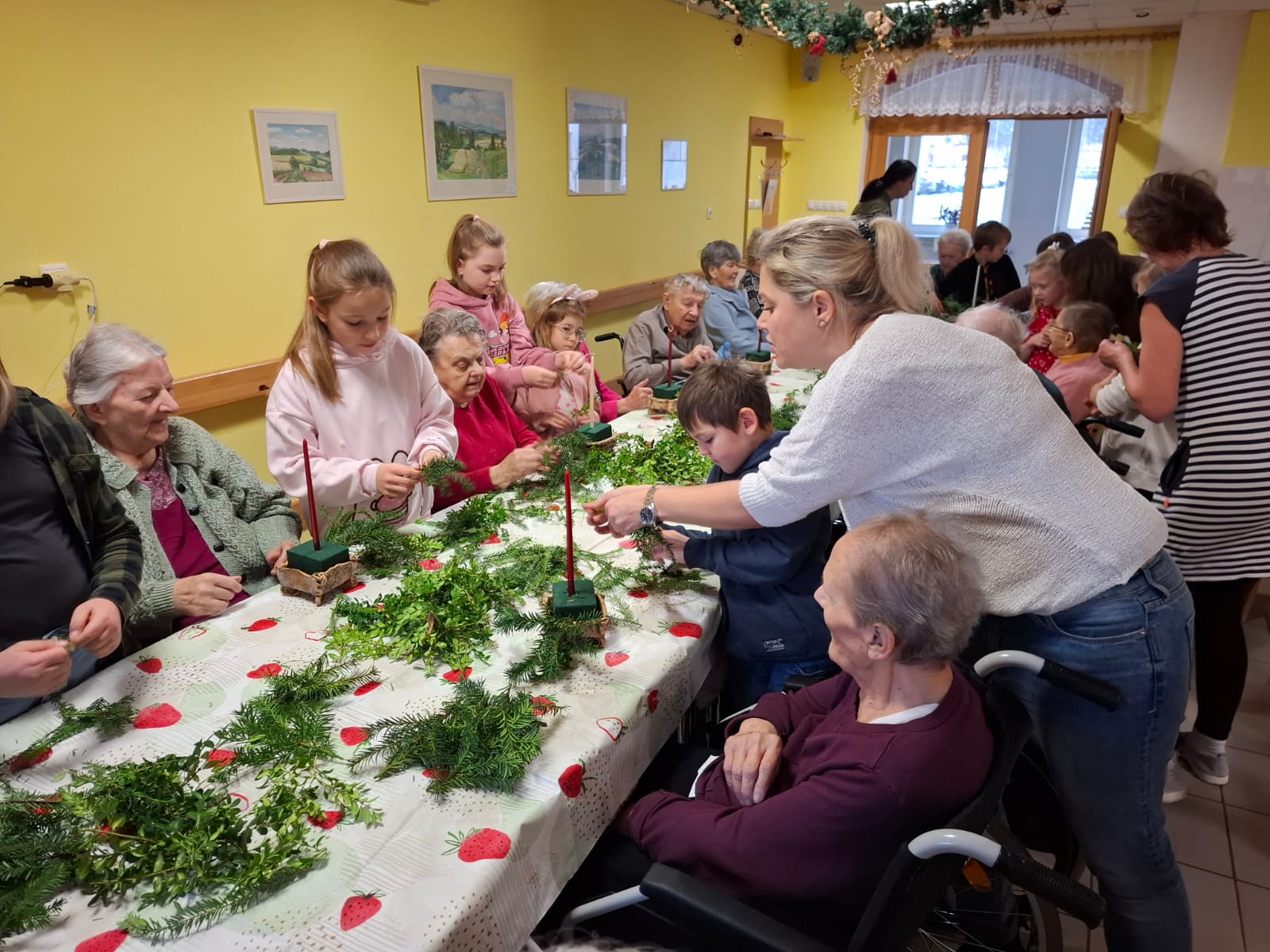 Společně jsme připravili voňavé jedlové větve, tis a krušpánek, ze kterých jsme vyráběli svícny určené k výzdobě našeho domova. Spolupráce fungovala výborně a panovala příjemná a tvořivá atmosféra.